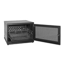 Armadio con chiusura a chiave che permette la protezione dei notebook e tablet custodi all'interno. I dispositivi si posizionano in verticale sul ripiano estraibile, separati da dei divisori. I cavi di alimentazione si possono fissare con le fascette incluse. Ideale per scuole o uffici. L'interno si può personalizzare a seconda delle esigenze, sul fondo dell'armadio si può posizionare una multi-presa o un alimentatore multi-porta USB per i tablet. Nella parte posteriore inoltre ci sono due montanti standard 19"su cui montare eventualmente delle multi-prese. L'armadio è in acciaio, assicura la protezione dei dispositivi interni, e ne permette l'areazione grazie alle fessure laterali e alla porta grigliata. Capacità: 16 tablet o 16 laptop fino a 15.6'' in verticale.