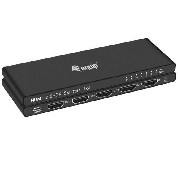 HDMI Splitter divide i segnali audio e video del dispositivo HDMI su quattro schermi, TV o proiettori con una risoluzione UHD 4K/60Hz.