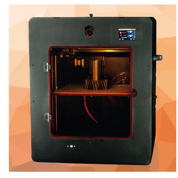 La sua eleganza e la sinuosità delle sue curve non potevano che disegnarsi dal nero. E' stata progettata una scocca dalle linee morbide, che racconta la rotondità del suo nome, che suggerisce una continuità tra la qualità elevata delle sue performance e la ricerca di un design minimale e pulito. Al total black è stato inserito come contrappunto uno sportello frontale in plexyglass in arancione caldo che permette un’ottima visibilità del processo di stampa, inoltre con i due sportelli laterali permettono un rapido e facile inserimento o cambio filamento.