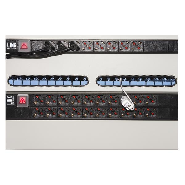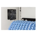 L'armadio è in acciaio, colore bianco e bordi arrotondati in plastica neri, si adatta all'arredamento di tutti gli ambienti, con porte traforate, assicura la protezione dei dispositivi interni, e ne permette l'areazione grazie alla porta grigliata e alle sei ventole di raffreddamento incluse (tre per lato).